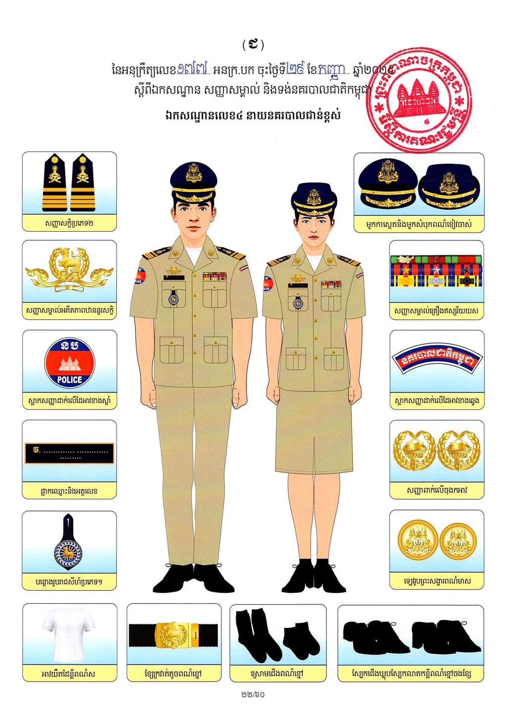 យល់ដឹងពីសញ្ញាសម្គាល់ និងទង់នគរបាលជាតិកម្ពុជា ឯកសណ្ឋានលេខ៤ ថ្នាក់ ៖