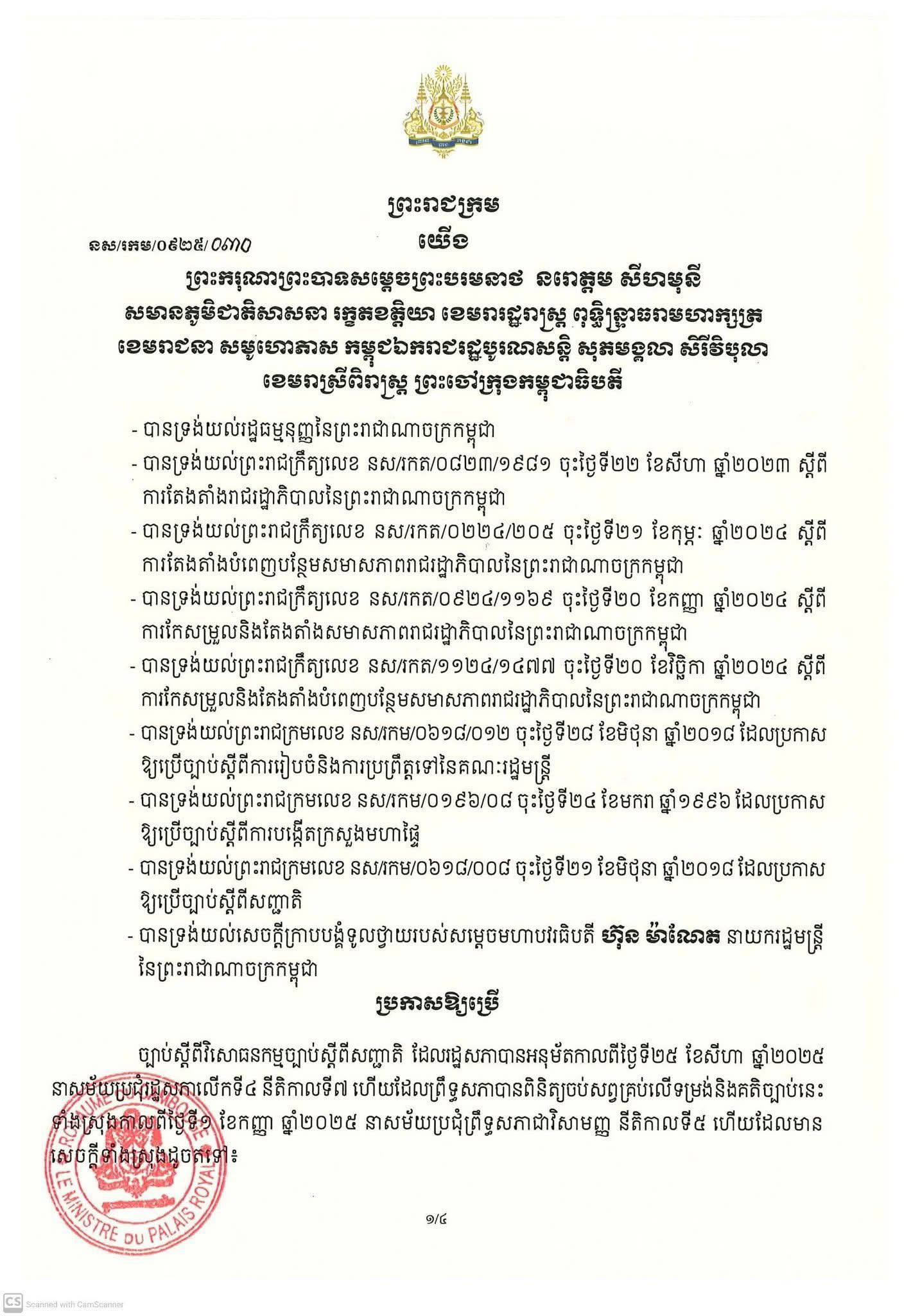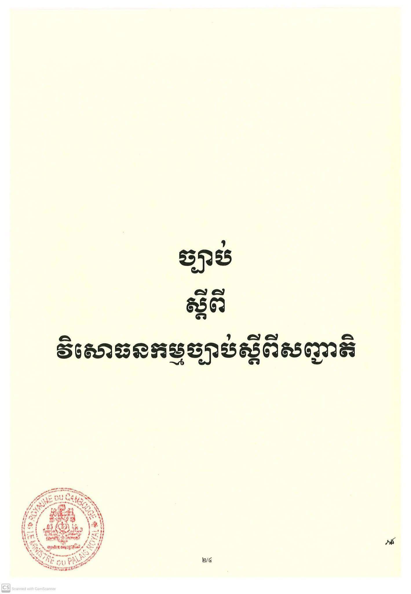 • វិសោធនកម្មច្បាប់ ពាក់ព័ន្ធការដកសញ្ជាតិខ្មែរ ត្រូវបានប្រកាសឱ្យប្រើជាធរមាន