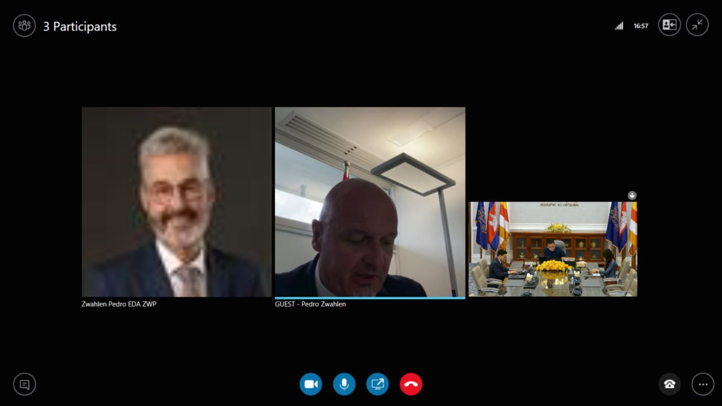 ឯកឧត្តមអភិសន្តិបណ្ឌិត ស សុខា អញ្ជើញជួបពិភាក្សាការងារជាមួយឯកឧត្តម ឯកអគ្គរដ្ឋទូត នៃសហព័ន្ធស្វីស ប្រចាំព្រះរាជាណាចក្រកម្ពុជា តាមប្រព័ន្ធ Skype