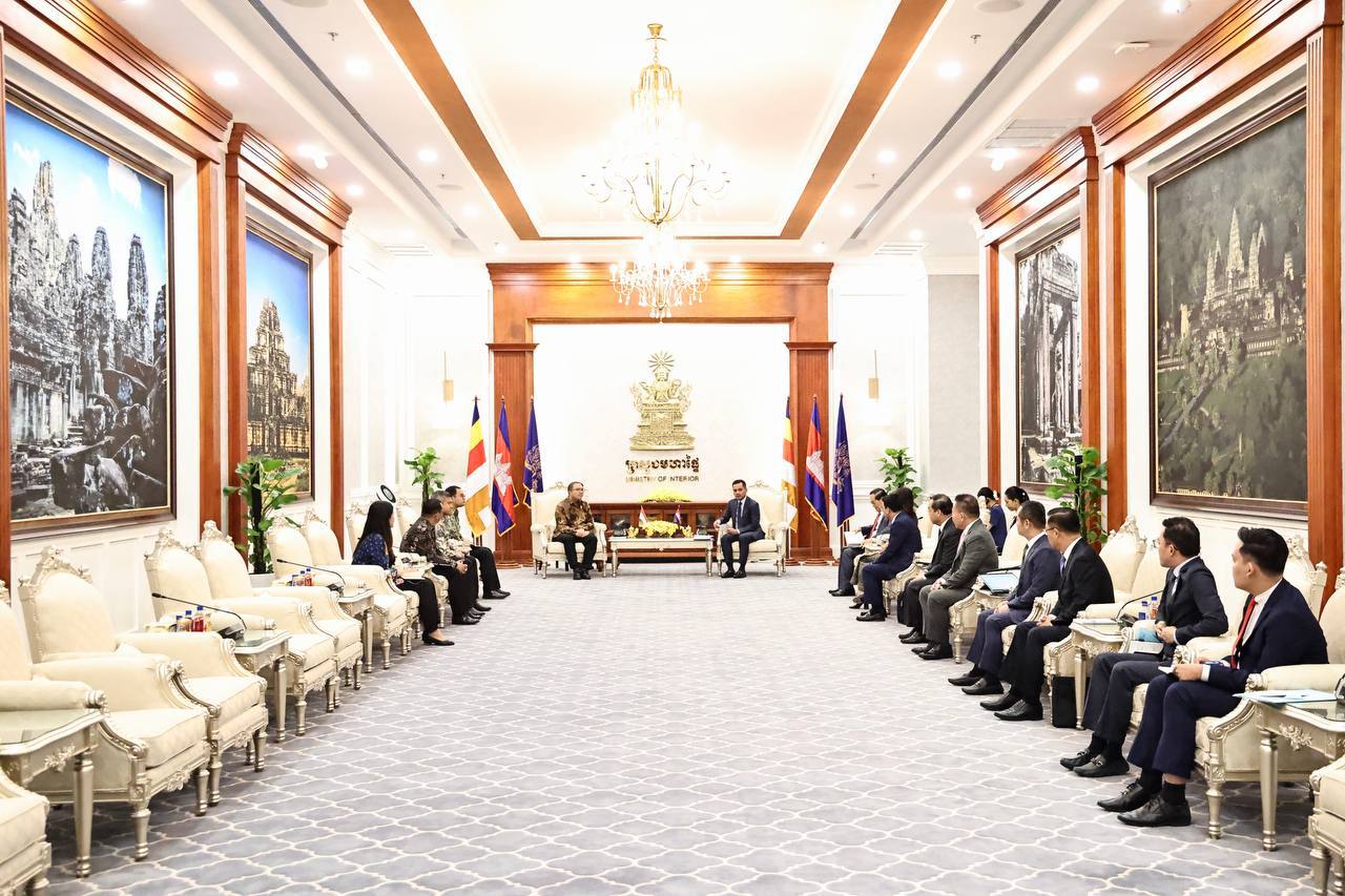 ទីស្តីការក្រសួងមហាផ្ទៃ៖ នៅរសៀលថ្ងៃទី១៩ ខែកុម្ភៈ ឆ្នាំ២០២៦ ឯកឧត្ដមអភិសន្តិបណ្ឌិត ស សុខា ឧបនាយករដ្ឋមន្ត្រី រដ្ឋមន្រ្តីក្រសួងមហាផ្ទៃ ទទួលជួបពិភាក្សាការងារ និងជម្រាបលា ជាមួយឯកឧត្តមបណ្ឌិត សាន់តូ ដាម៉ូស៊ូម៉ាតូ (Santo Darmosumarto) ឯកអគ្គរដ្ឋទូតវិសាមញ្ញនិងពេញសមត្ថភាពនៃសាធារណរដ្ឋឥណ្ឌូណេស៊ី ប្រចាំព្រះរាជាណាចក្រកម្ពុជា និងសហការី នៅសាលទទួលភ្ញៀវអន្តរជាតិនៃទីស្តីការក្រសួងមហាផ្ទៃ ៕