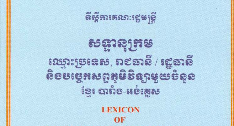 សទ្ទានុក្រមឈ្មោះប្រទេស រាជធានី រដ្ឋធានី និងបច្ចេកសព្ទភូមិវិទ្យាមួយចំនួន ខ្មែរ បារាំង អង់គ្លេស ចុចទីនេះដើម្បីទាញយក