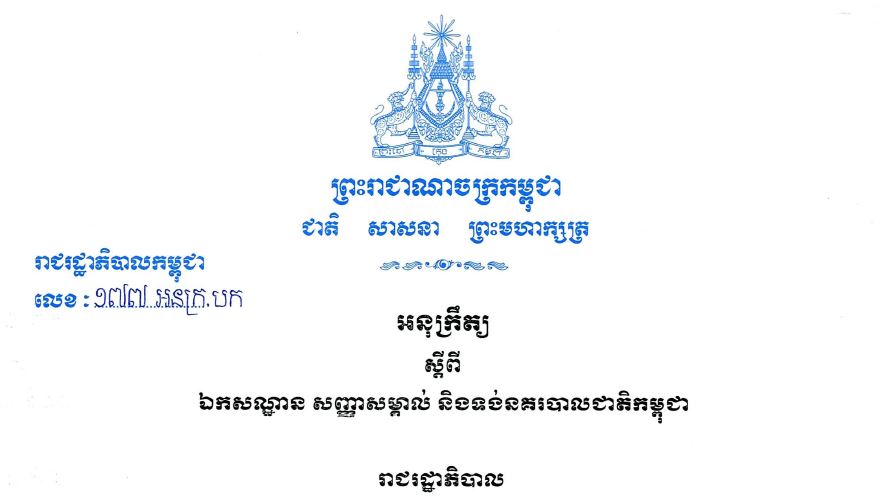 អនុក្រឹត្យ ស្តីពី ឯកសណ្ឋាន សញ្ញាសម្គាល់ និងទង់នគរបាលជាតិកម្ពុជា